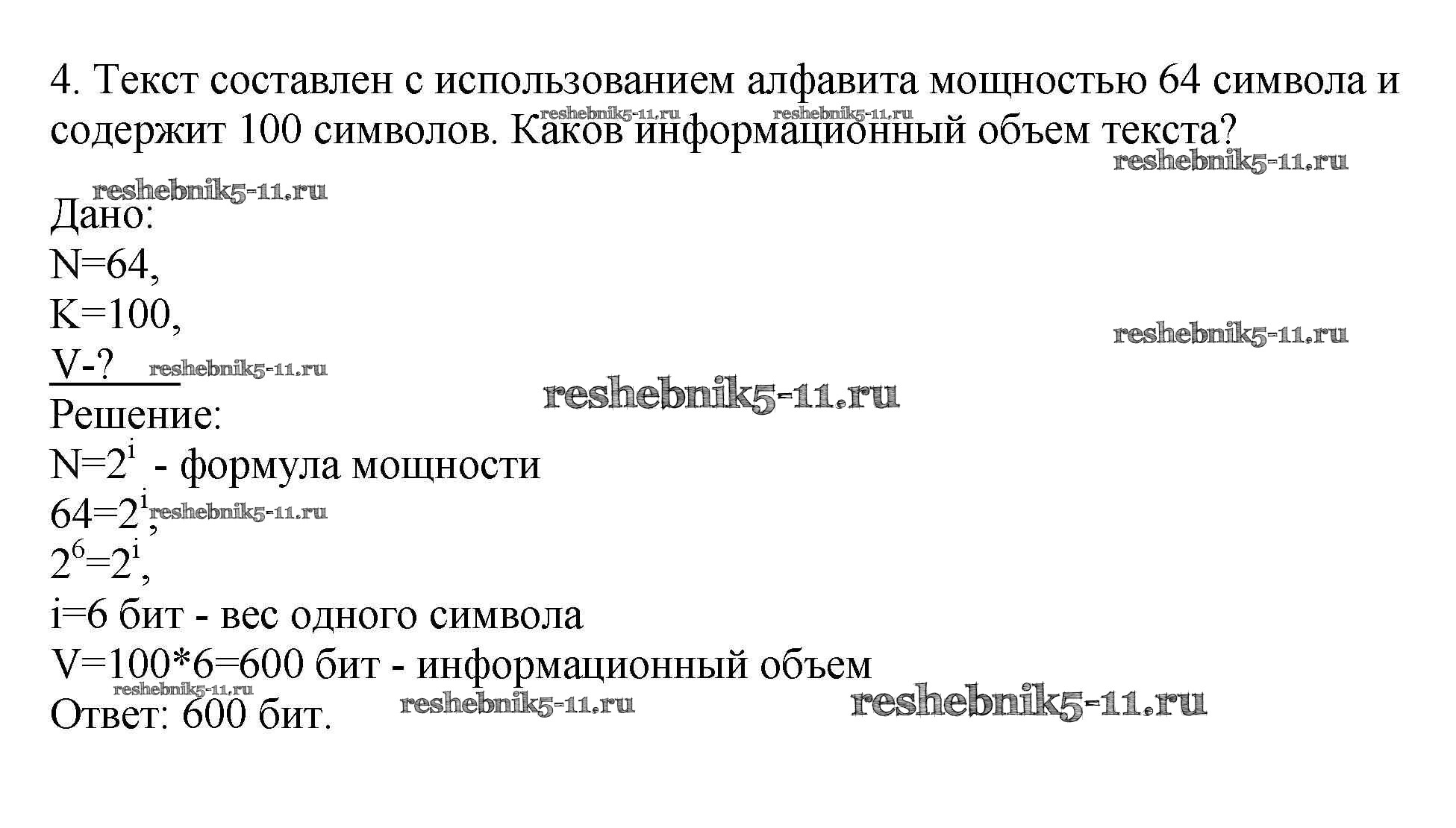 Готовая домашняя работа с ответами по Информатике за 7 класс Семакин, Залогова, Русаков, Шестакова Учебник Бином 2017 ФГОС - § 4. Измерение информации 4