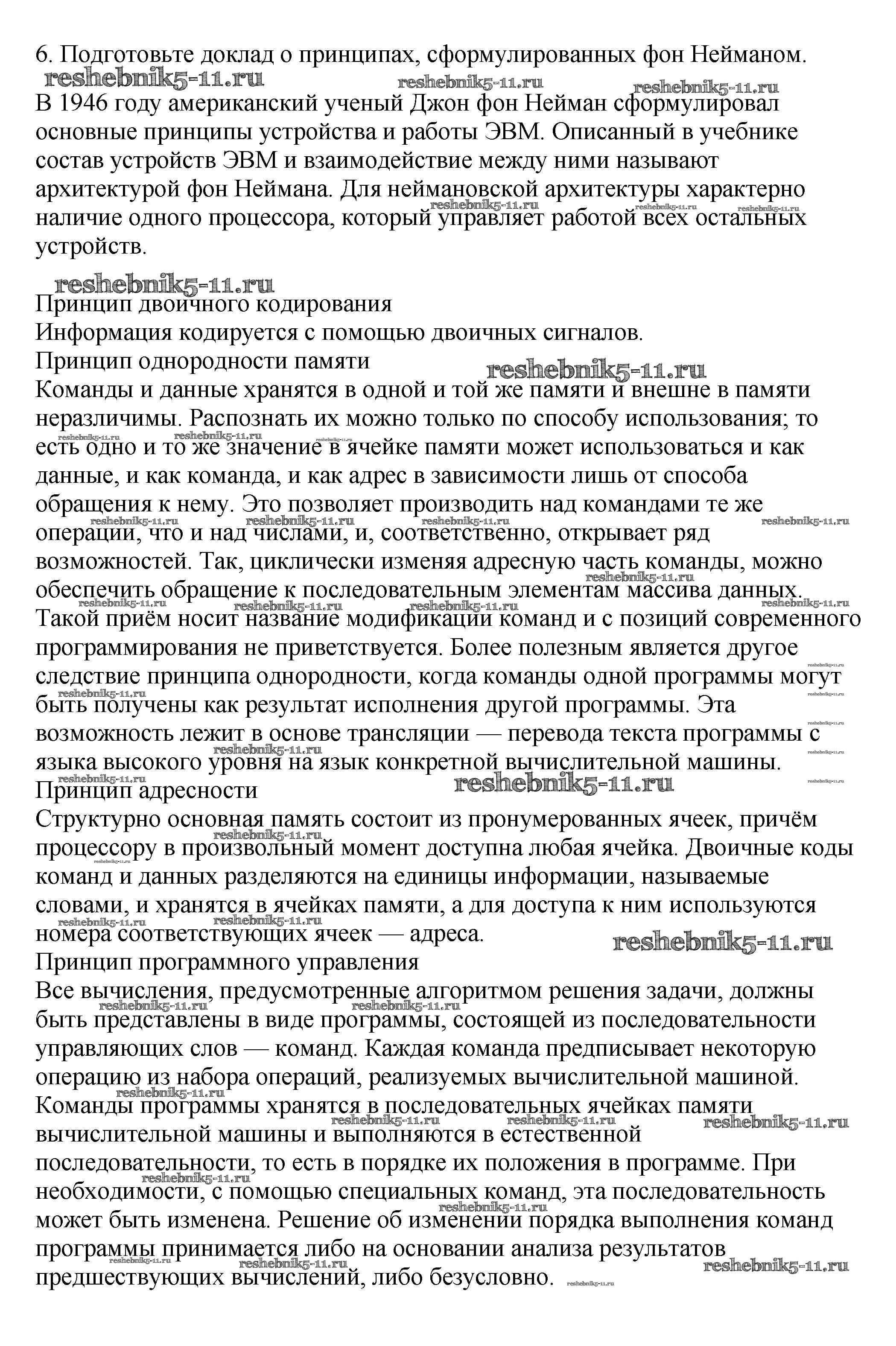 Готовая домашняя работа с ответами по Информатике за 7 класс Семакин, Залогова, Русаков, Шестакова Учебник Бином 2017 ФГОС - § 5. Назначение и устройство компьютера 6