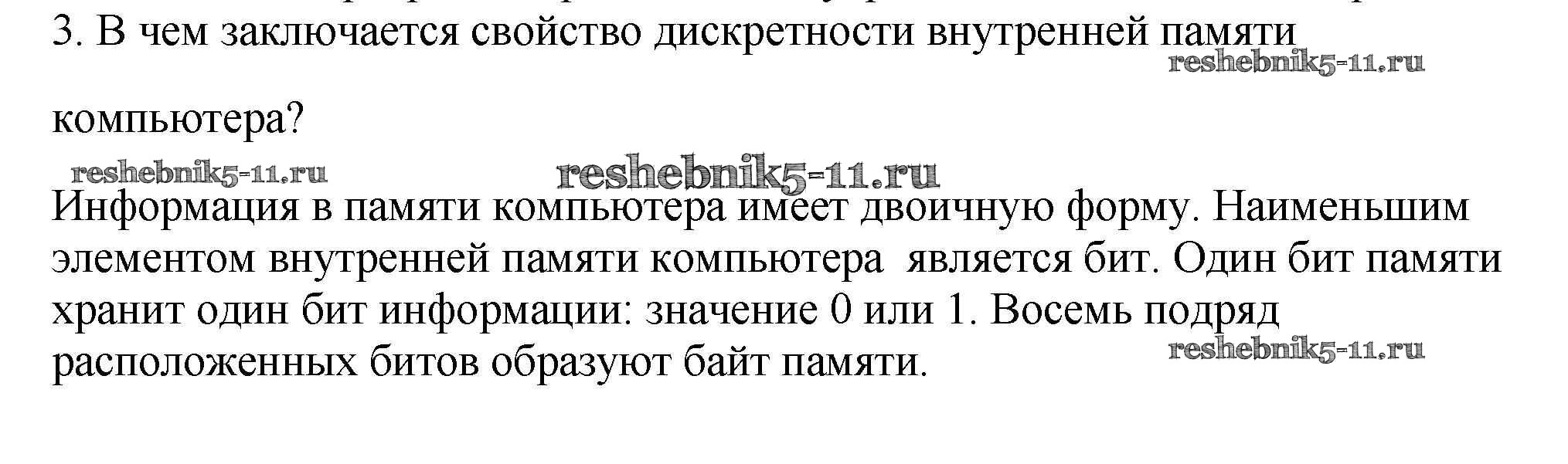 Готовая домашняя работа с ответами по Информатике за 7 класс Семакин, Залогова, Русаков, Шестакова Учебник Бином 2017 ФГОС - § 6. Компьютерная память 3
