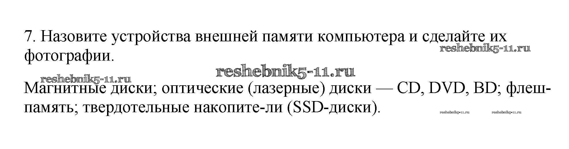 Готовая домашняя работа с ответами по Информатике за 7 класс Семакин, Залогова, Русаков, Шестакова Учебник Бином 2017 ФГОС - § 6. Компьютерная память 7