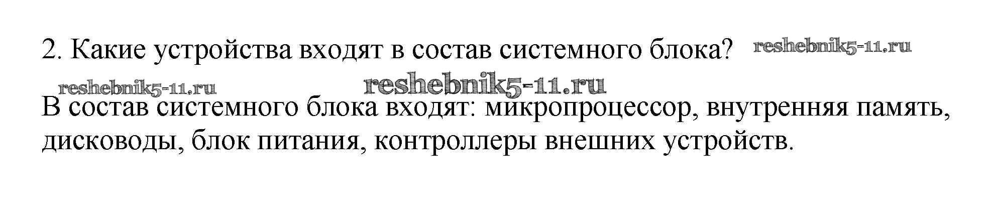 Готовая домашняя работа с ответами по Информатике за 7 класс Семакин, Залогова, Русаков, Шестакова Учебник Бином 2017 ФГОС - § 7. Как устроен персональный компьютер 2