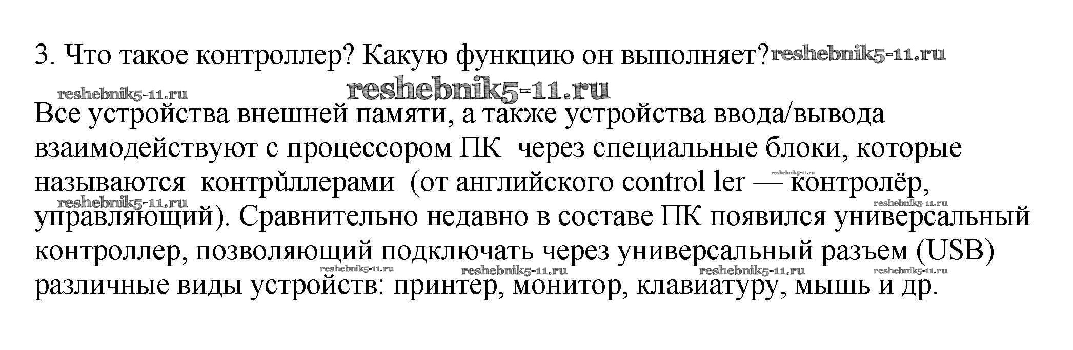 Готовая домашняя работа с ответами по Информатике за 7 класс Семакин, Залогова, Русаков, Шестакова Учебник Бином 2017 ФГОС - § 7. Как устроен персональный компьютер 3