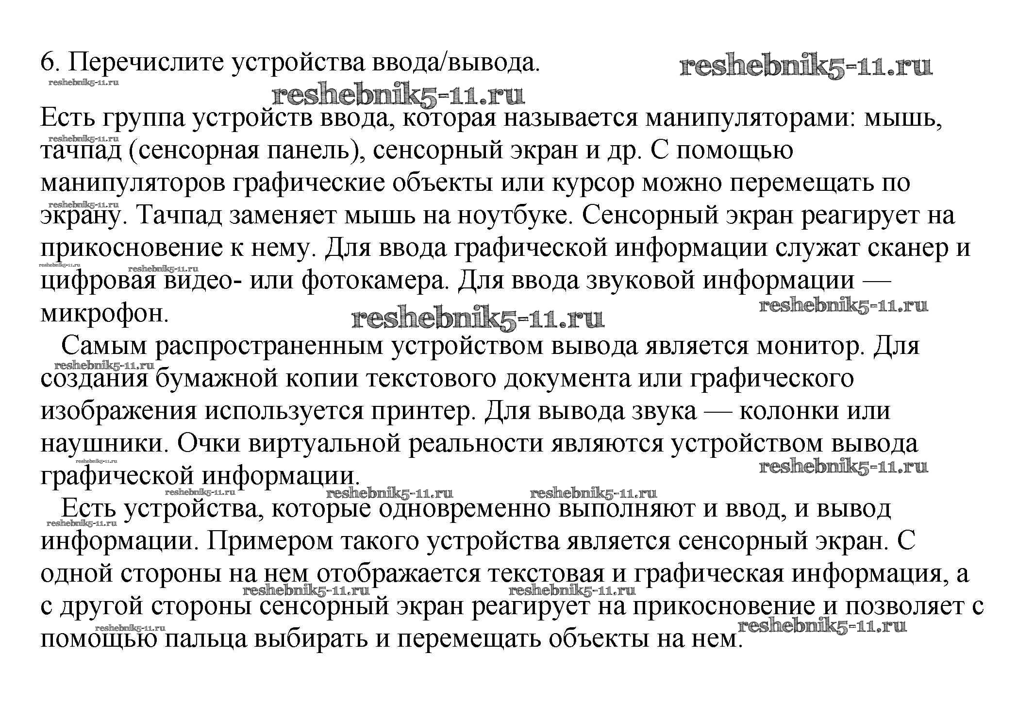 Готовая домашняя работа с ответами по Информатике за 7 класс Семакин, Залогова, Русаков, Шестакова Учебник Бином 2017 ФГОС - § 7. Как устроен персональный компьютер 6