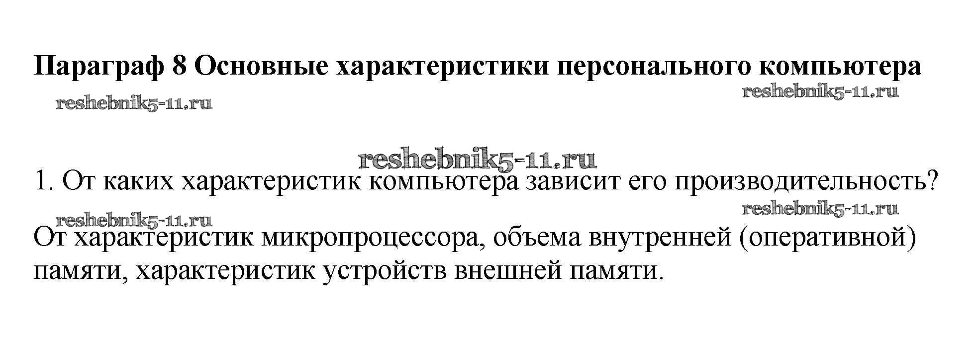 Готовая домашняя работа с ответами по Информатике за 7 класс Семакин, Залогова, Русаков, Шестакова Учебник Бином 2017 ФГОС - § 8. Основные характеристики персонального компьютера 1