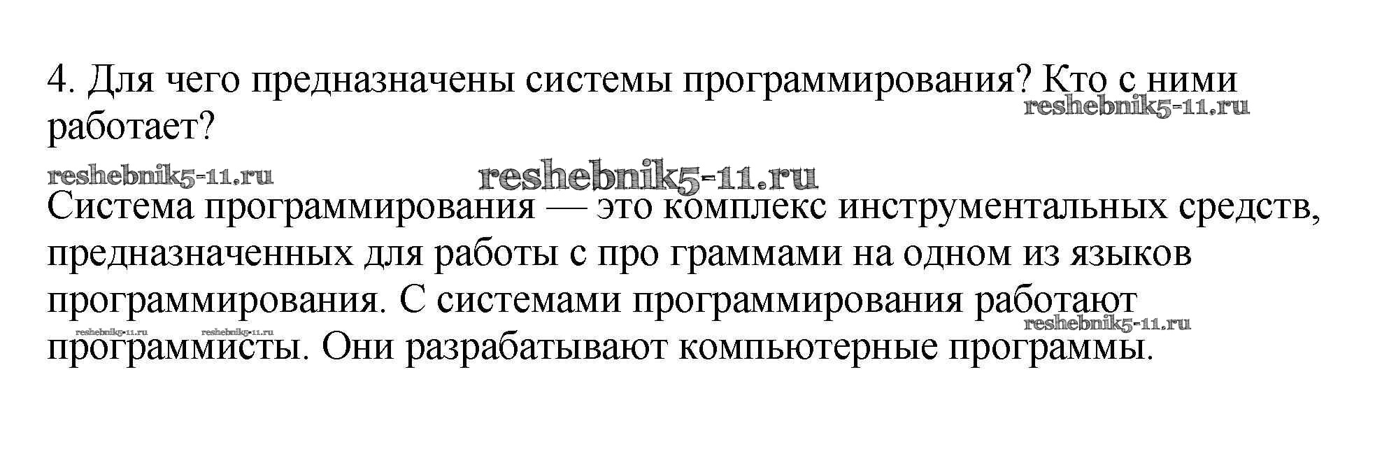 Готовая домашняя работа с ответами по Информатике за 7 класс Семакин, Залогова, Русаков, Шестакова Учебник Бином 2017 ФГОС - §10. О системном ПО и системах программирования 4