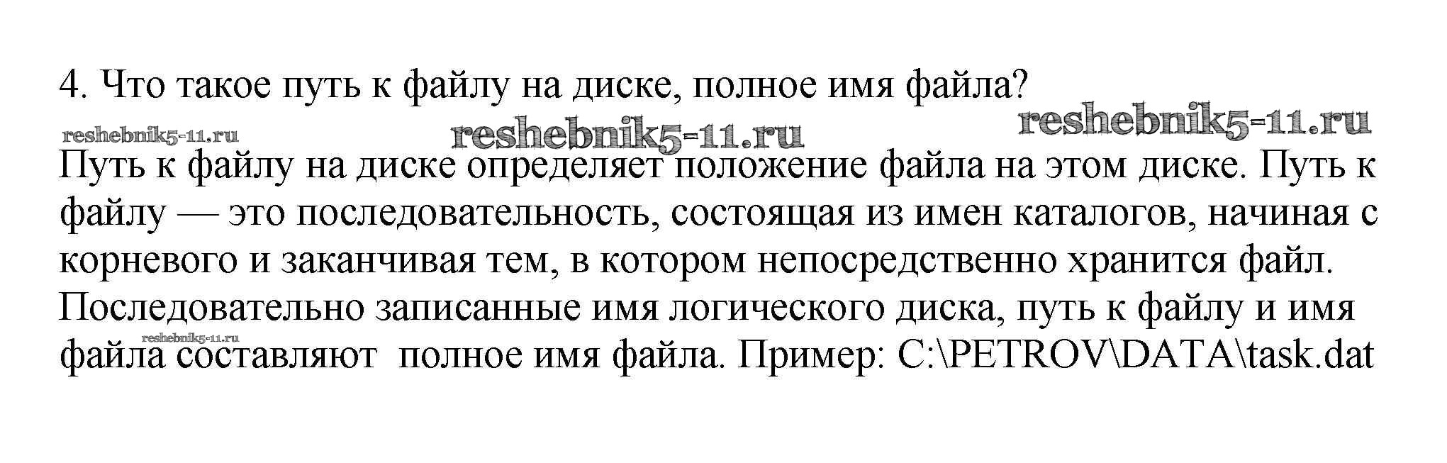 Готовая домашняя работа с ответами по Информатике за 7 класс Семакин, Залогова, Русаков, Шестакова Учебник Бином 2017 ФГОС - §11. О файлах и файловых структурах 4