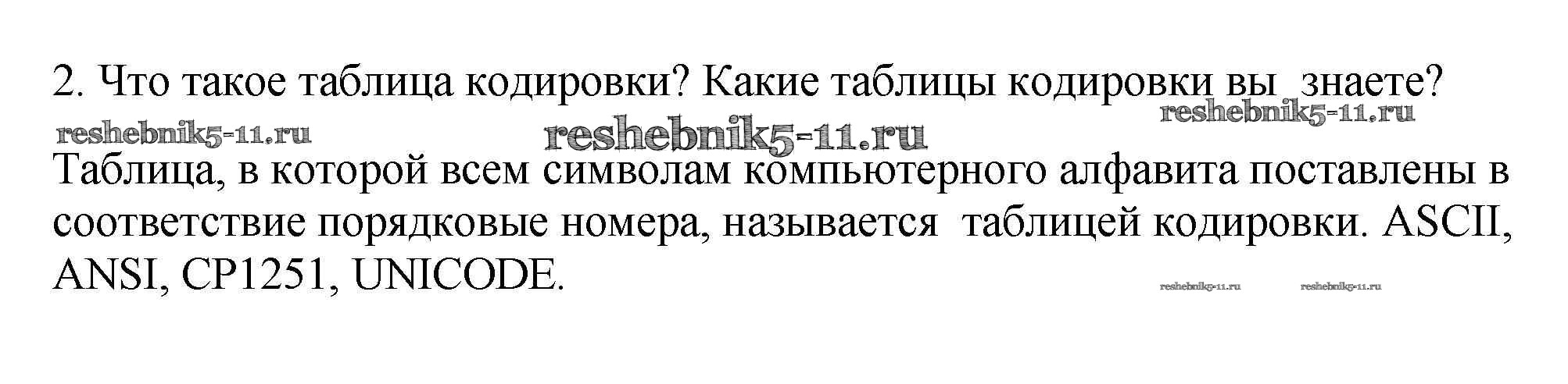 Готовая домашняя работа с ответами по Информатике за 7 класс Семакин, Залогова, Русаков, Шестакова Учебник Бином 2017 ФГОС - § 13. Тексты в компьютерной памяти 2