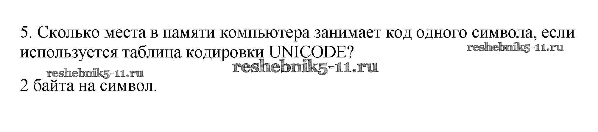 Готовая домашняя работа с ответами по Информатике за 7 класс Семакин, Залогова, Русаков, Шестакова Учебник Бином 2017 ФГОС - § 13. Тексты в компьютерной памяти 5
