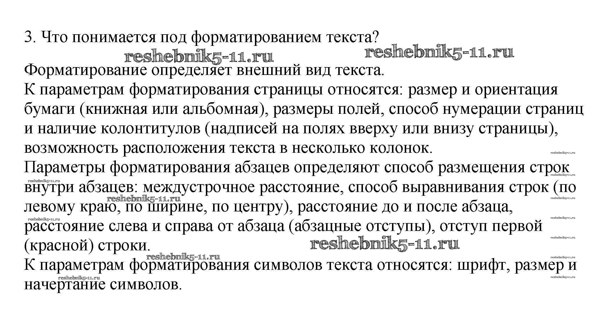 Готовая домашняя работа с ответами по Информатике за 7 класс Семакин, Залогова, Русаков, Шестакова Учебник Бином 2017 ФГОС - § 15. Работа с текстовым редактором 3