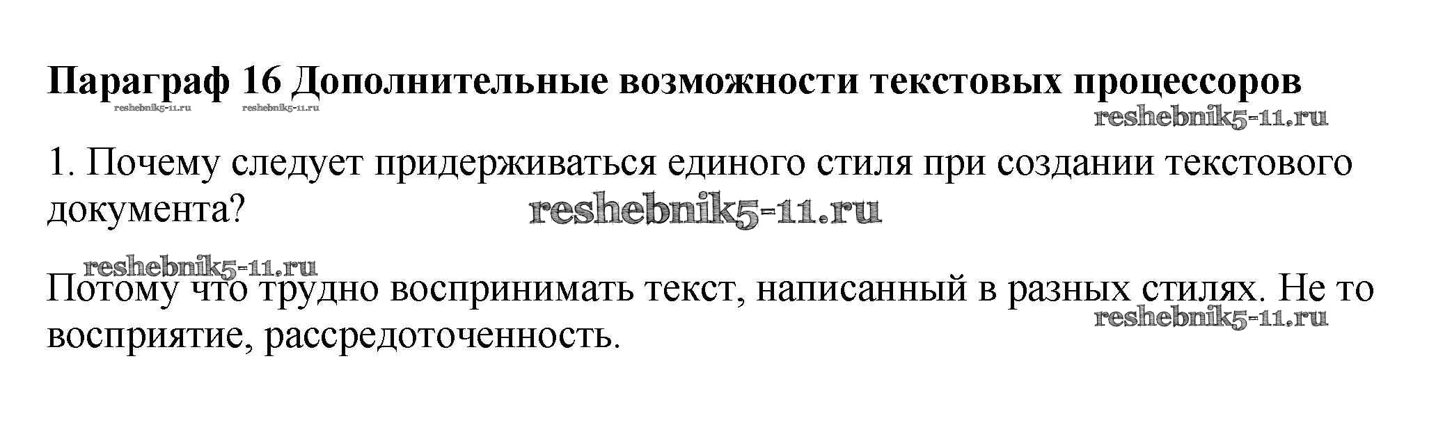 Готовая домашняя работа с ответами по Информатике за 7 класс Семакин, Залогова, Русаков, Шестакова Учебник Бином 2017 ФГОС - § 16. Дополнительные возможности текстовых процессоров 1