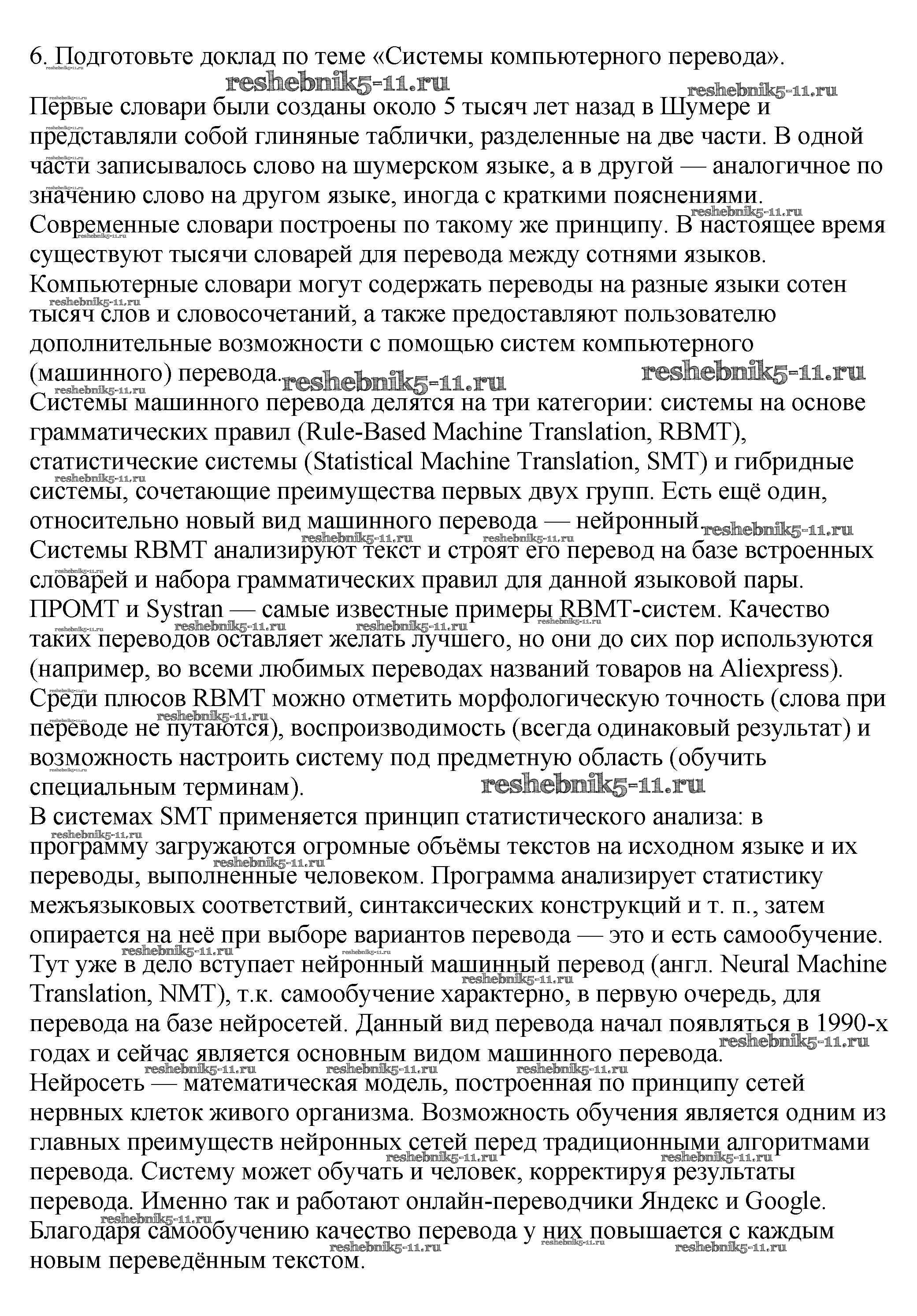 Готовая домашняя работа с ответами по Информатике за 7 класс Семакин, Залогова, Русаков, Шестакова Учебник Бином 2017 ФГОС - § 17. Системы перевода и распознавания текстов 6