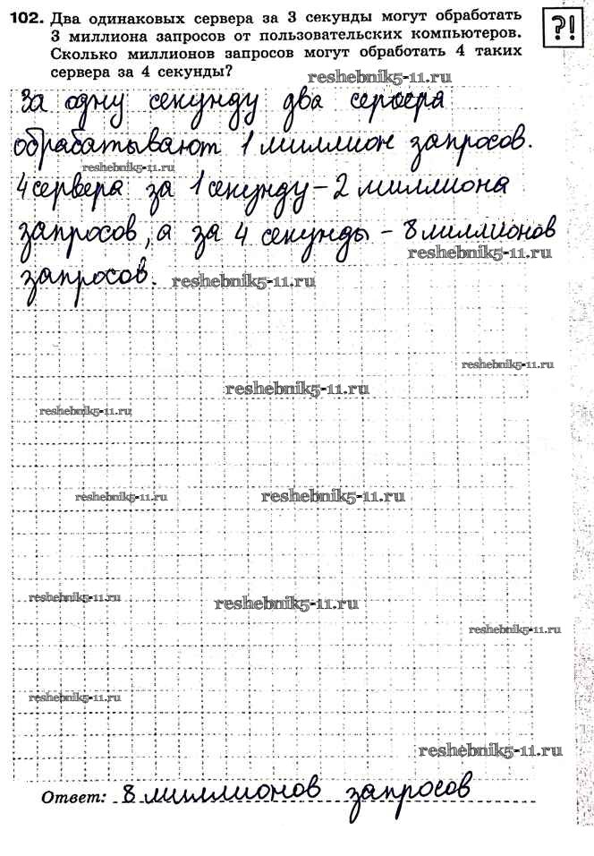 Готовая домашняя работа с ответами по Информатике за 7 класс Босова Рабочая тетрадь Бином 2018 ФГОС - Задания 102