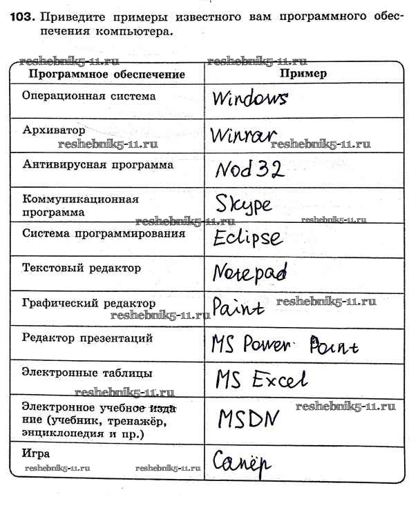 Готовая домашняя работа с ответами по Информатике за 7 класс Босова Рабочая тетрадь Бином 2018 ФГОС - Задания 103