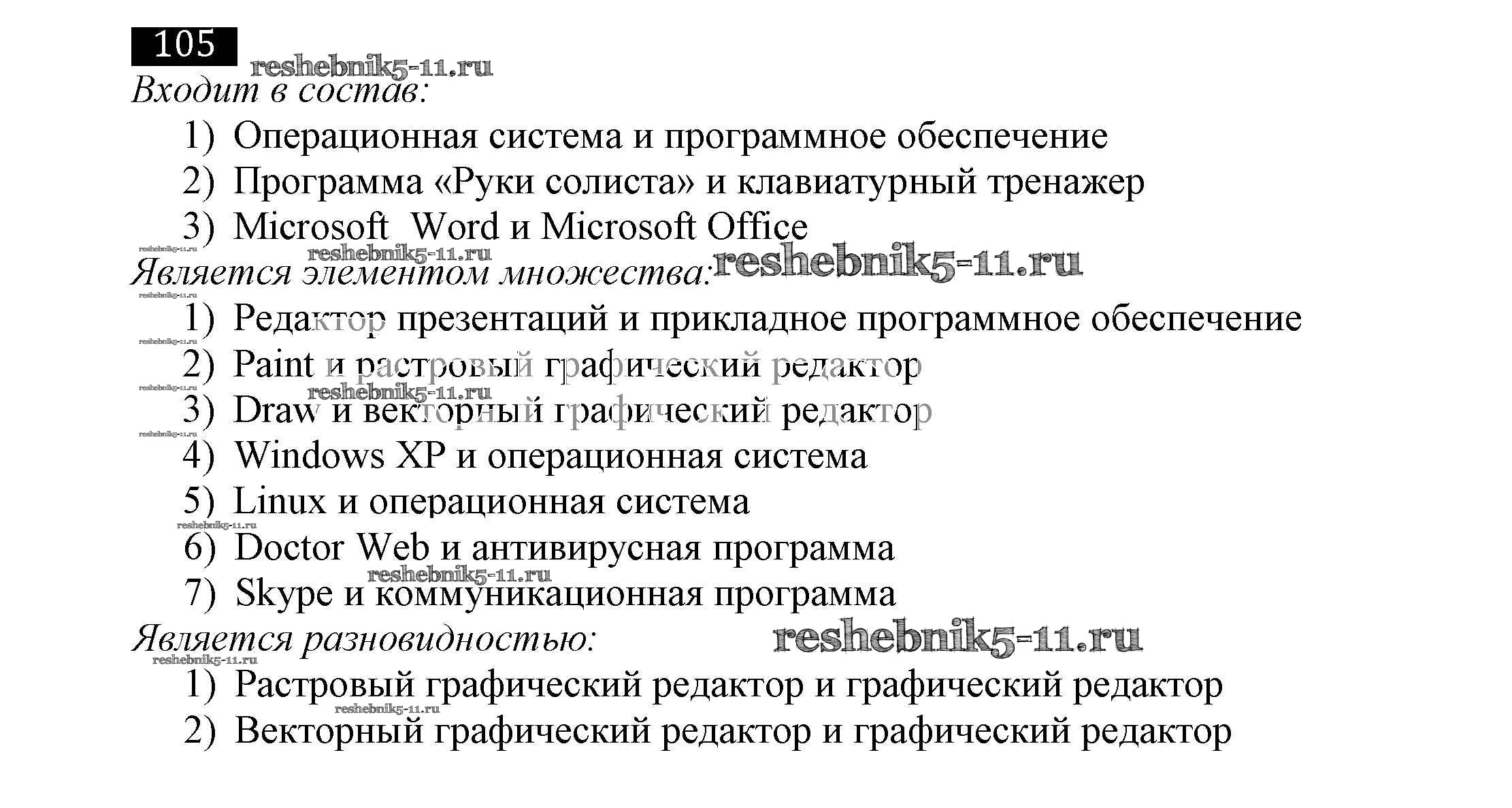 Готовая домашняя работа с ответами по Информатике за 7 класс Босова Рабочая тетрадь Бином 2018 ФГОС - Задания 105