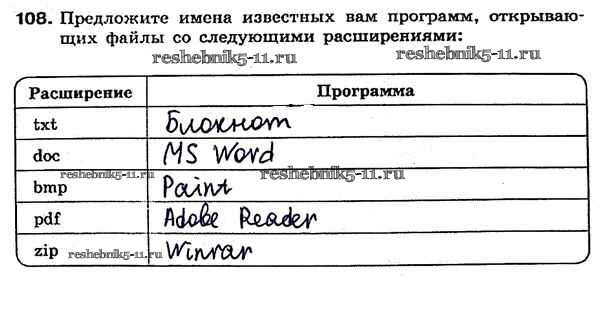 Готовая домашняя работа с ответами по Информатике за 7 класс Босова Рабочая тетрадь Бином 2018 ФГОС - Задания 108