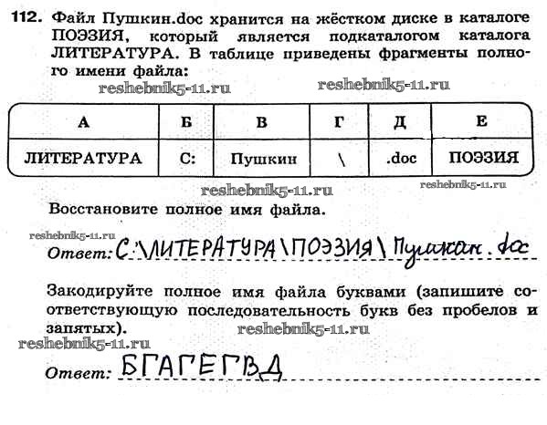 Готовая домашняя работа с ответами по Информатике за 7 класс Босова Рабочая тетрадь Бином 2018 ФГОС - Задания 112