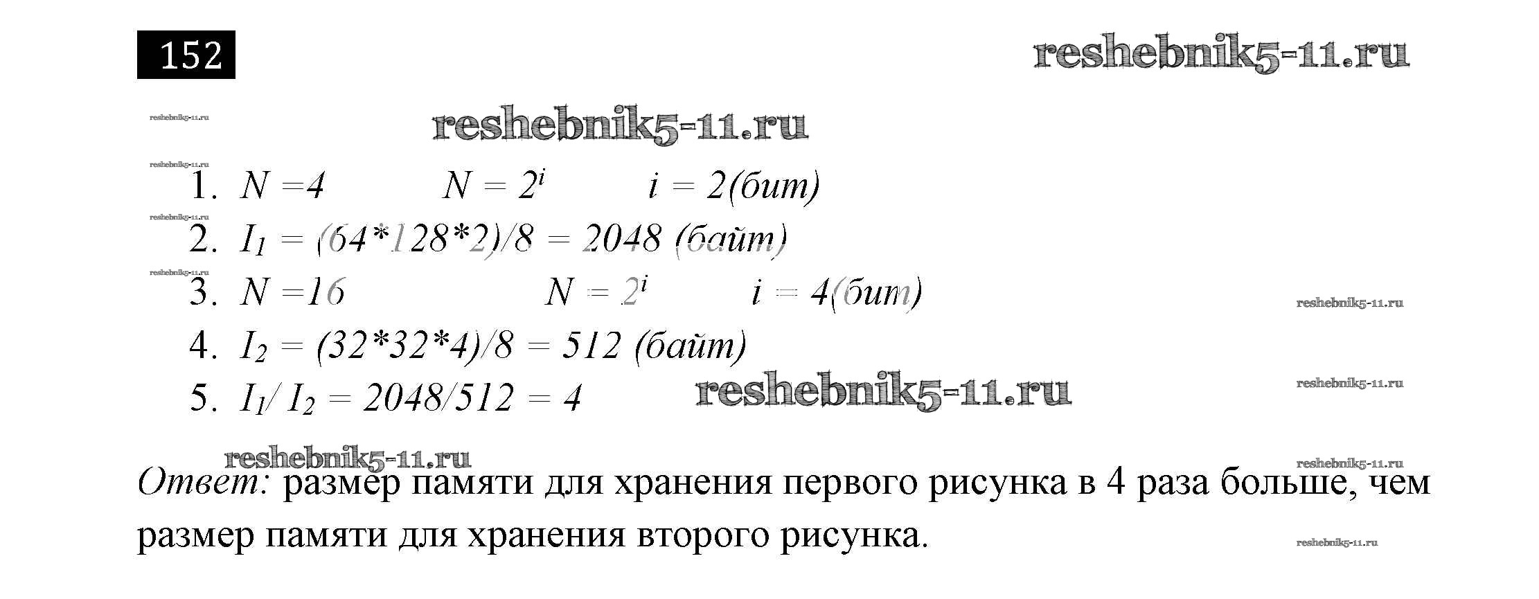 Готовая домашняя работа с ответами по Информатике за 7 класс Босова Рабочая тетрадь Бином 2018 ФГОС - Задания 152