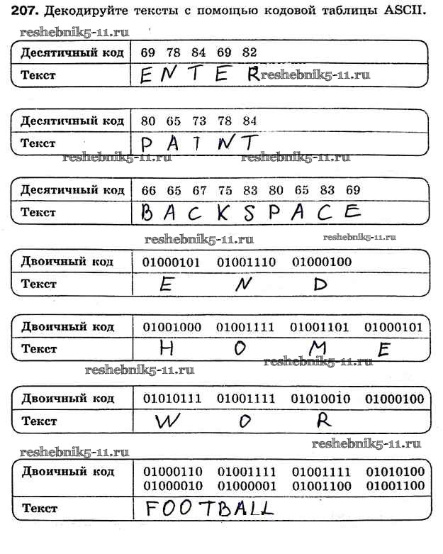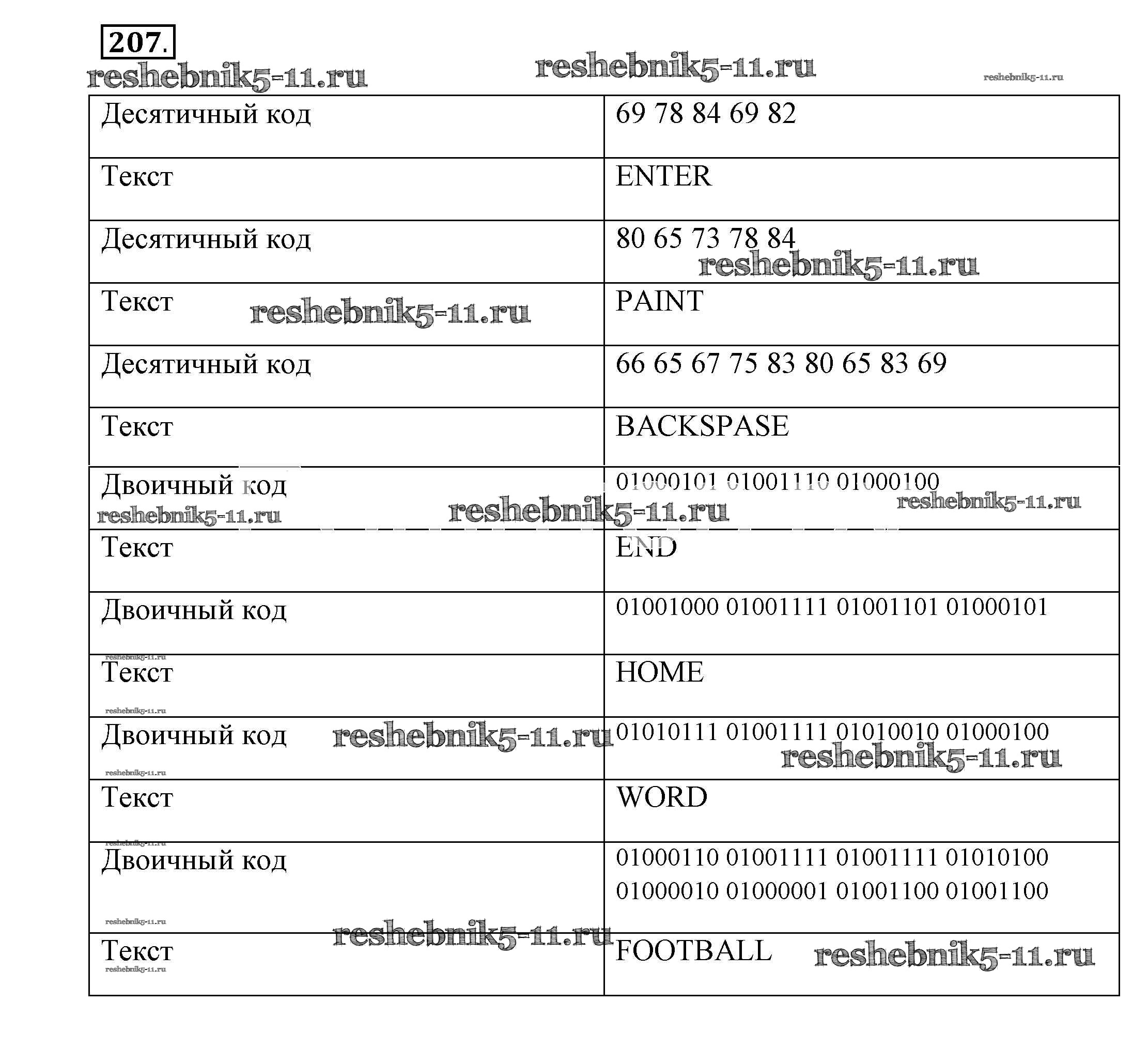 Информатика за 7 класс Босова Рабочая тетрадь Бином задание 207