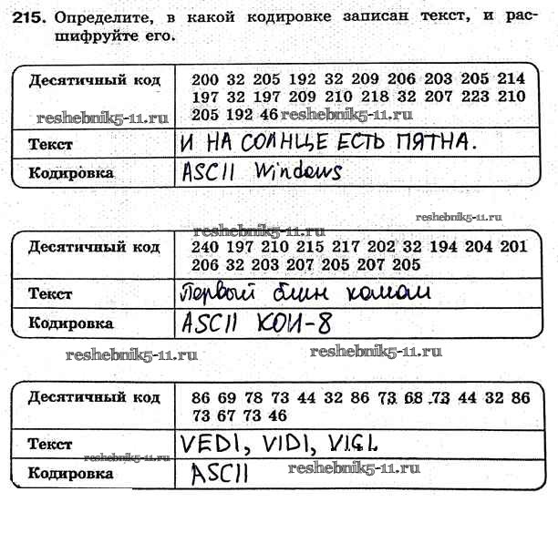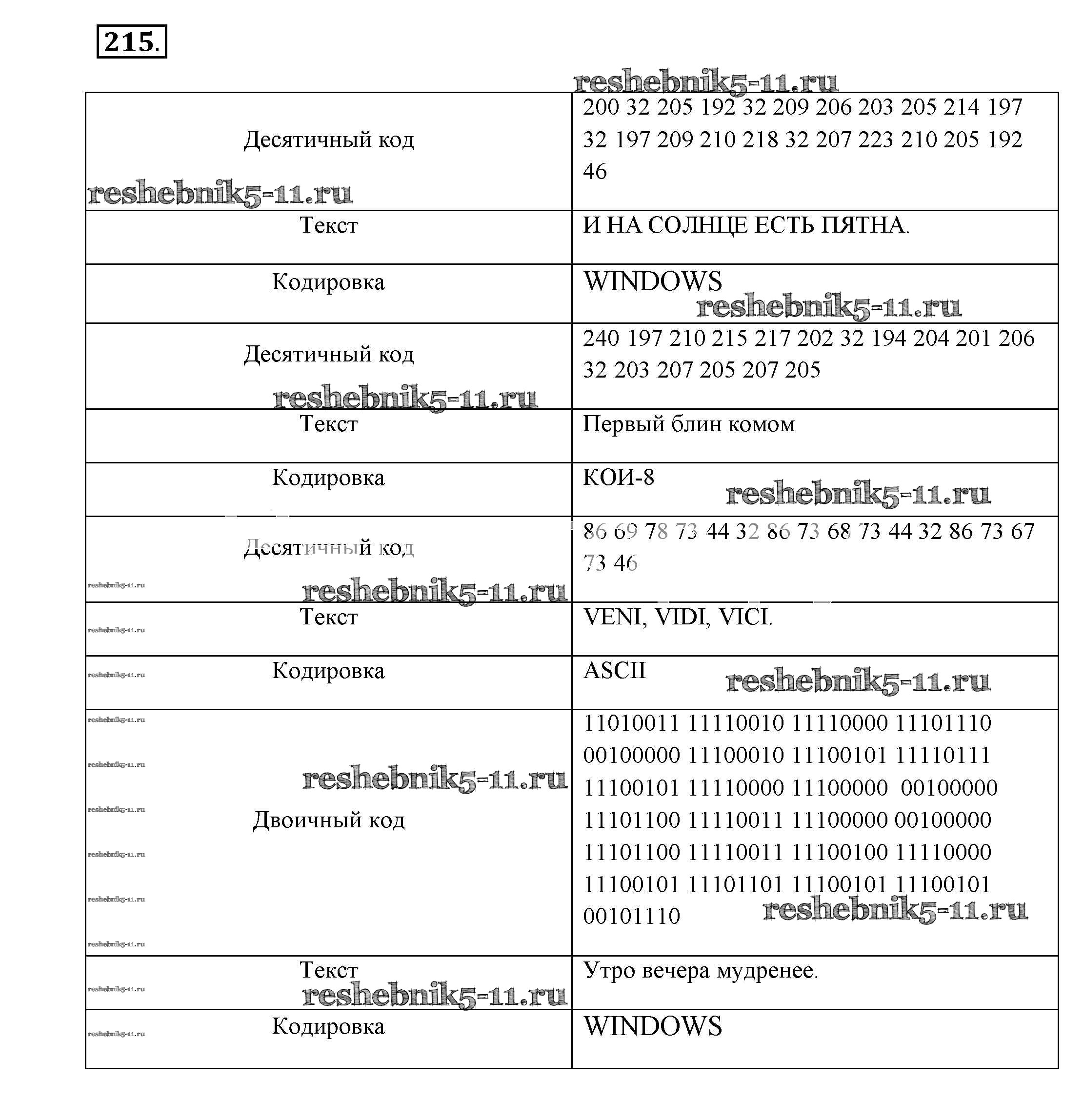 Готовая домашняя работа с ответами по Информатике за 7 класс Босова Рабочая тетрадь Бином 2018 ФГОС - Задания 215