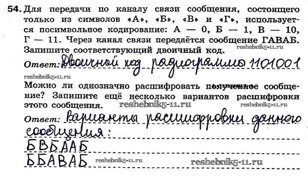 Готовая домашняя работа с ответами по Информатике за 7 класс Босова Рабочая тетрадь Бином 2018 ФГОС - Задания 54