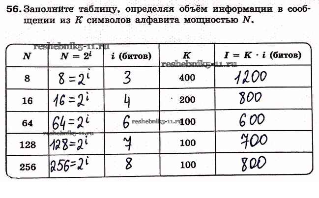 Готовая домашняя работа с ответами по Информатике за 7 класс Босова Рабочая тетрадь Бином 2018 ФГОС - Задания 56