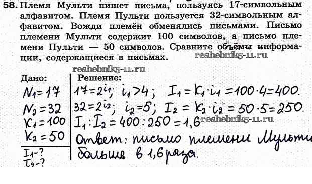 Готовая домашняя работа с ответами по Информатике за 7 класс Босова Рабочая тетрадь Бином 2018 ФГОС - Задания 58
