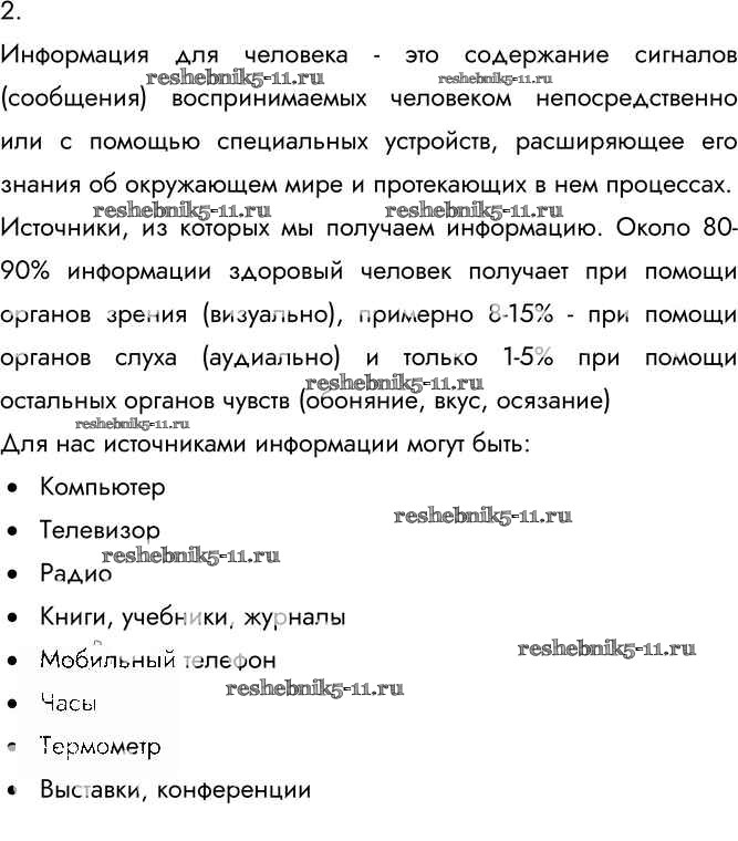 Готовая домашняя работа с ответами по Информатике за 7 класс Босова Учебник Бином 2015 ФГОС - §1.1. Информация и ее свойства Объекты окружающего мира 2