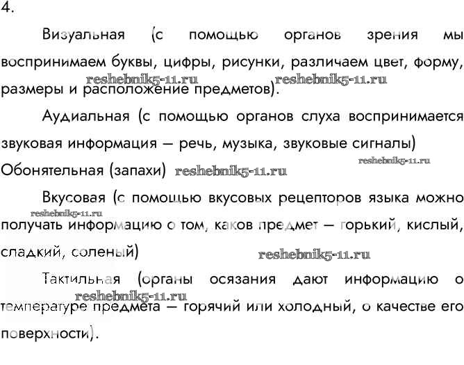 Готовая домашняя работа с ответами по Информатике за 7 класс Босова Учебник Бином 2015 ФГОС - §1.1. Информация и ее свойства Объекты окружающего мира 4