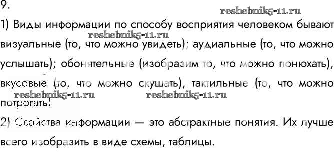 Готовая домашняя работа с ответами по Информатике за 7 класс Босова Учебник Бином 2015 ФГОС - §1.1. Информация и ее свойства Объекты окружающего мира 9