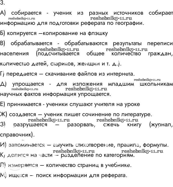 Готовая домашняя работа с ответами по Информатике за 7 класс Босова Учебник Бином 2015 ФГОС - §1.2. Информационные процессы 3