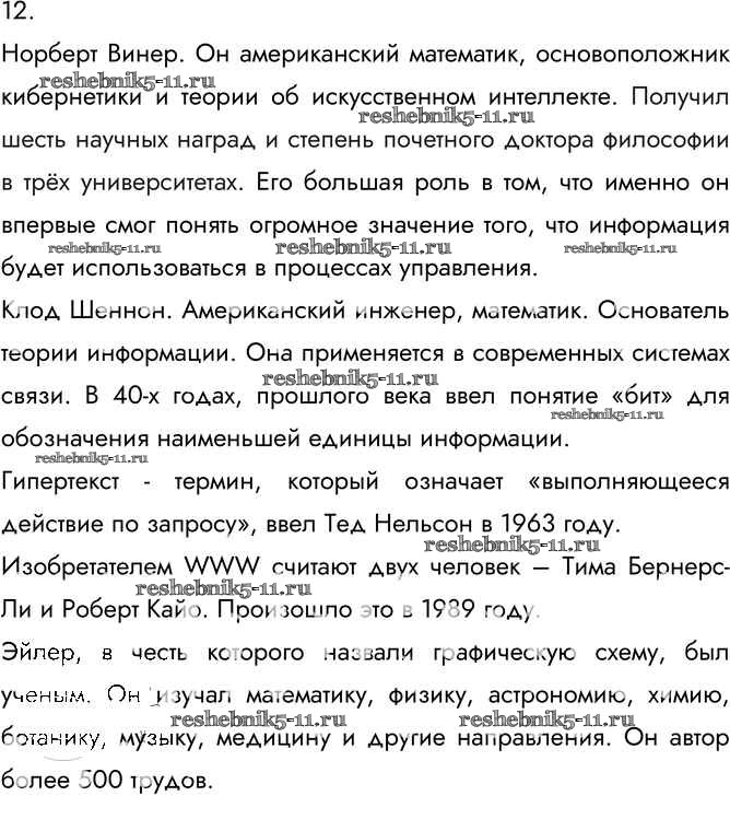 Готовая домашняя работа с ответами по Информатике за 7 класс Босова Учебник Бином 2015 ФГОС - §1.3. Всемирная паутина 12