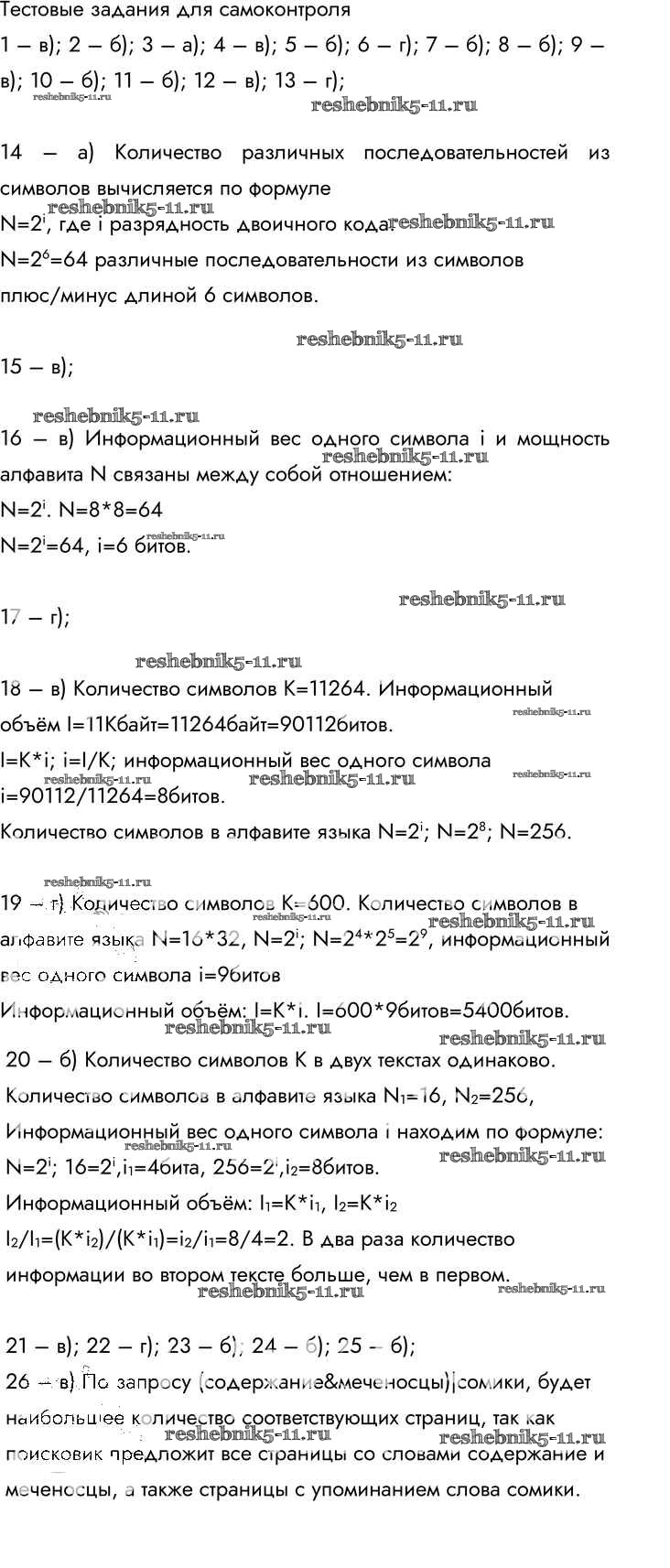 Готовая домашняя работа с ответами по Информатике за 7 класс Босова Учебник Бином 2015 ФГОС - Тестовые задания для самоконтроля 1-26