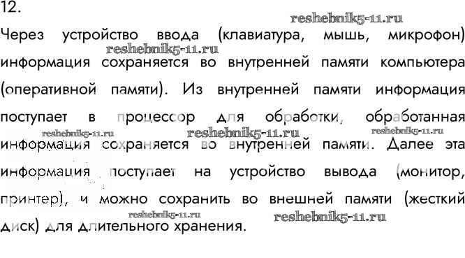Готовая домашняя работа с ответами по Информатике за 7 класс Босова Учебник Бином 2015 ФГОС - §2.1. Основные компоненты компьютера и их функции 12