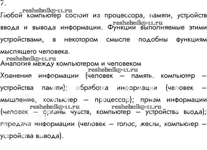 Готовая домашняя работа с ответами по Информатике за 7 класс Босова Учебник Бином 2015 ФГОС - §2.1. Основные компоненты компьютера и их функции 7