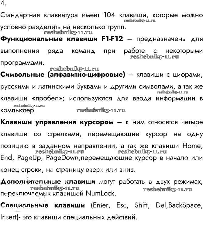 Готовая домашняя работа с ответами по Информатике за 7 класс Босова Учебник Бином 2015 ФГОС - §2.2. Персональный компьютер 4