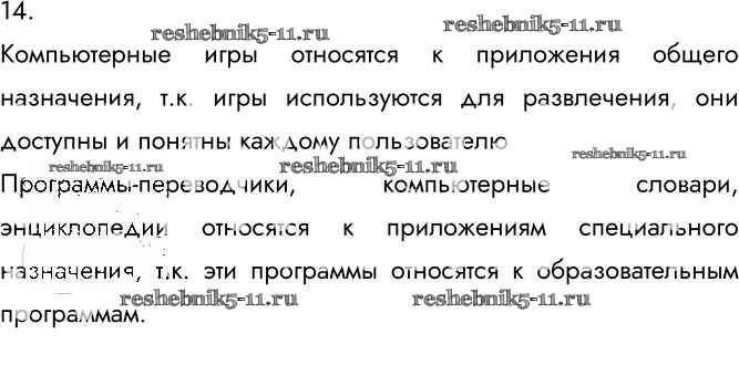 Готовая домашняя работа с ответами по Информатике за 7 класс Босова Учебник Бином 2015 ФГОС - §2.3. Программное обеспечение компьютера 14
