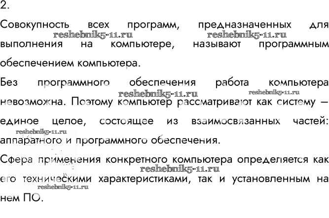 Готовая домашняя работа с ответами по Информатике за 7 класс Босова Учебник Бином 2015 ФГОС - §2.3. Программное обеспечение компьютера 2