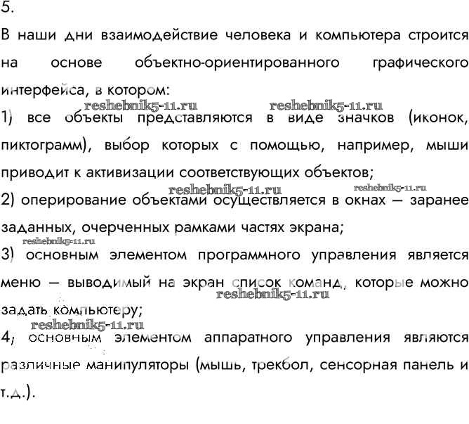 Готовая домашняя работа с ответами по Информатике за 7 класс Босова Учебник Бином 2015 ФГОС - §2.5. Пользовательский интерфейс 5