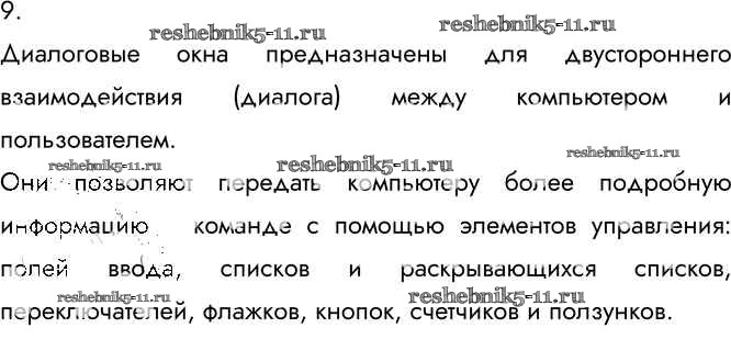 Готовая домашняя работа с ответами по Информатике за 7 класс Босова Учебник Бином 2015 ФГОС - §2.5. Пользовательский интерфейс 9