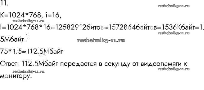 Готовая домашняя работа с ответами по Информатике за 7 класс Босова Учебник Бином 2015 ФГОС - §3.1. Формирование изображения на экране монитора 11