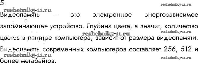 Готовая домашняя работа с ответами по Информатике за 7 класс Босова Учебник Бином 2015 ФГОС - §3.1. Формирование изображения на экране монитора 5