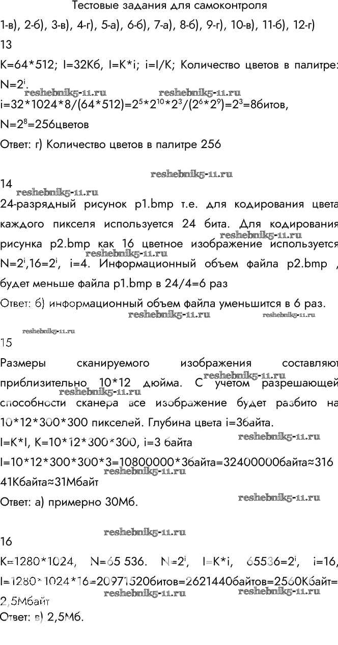 Готовая домашняя работа с ответами по Информатике за 7 класс Босова Учебник Бином 2015 ФГОС - Тестовые задания для самоконтроля 1-16
