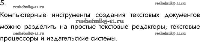 Готовая домашняя работа с ответами по Информатике за 7 класс Босова Учебник Бином 2015 ФГОС - §4.1. Текстовые документы и технологии из создания 5
