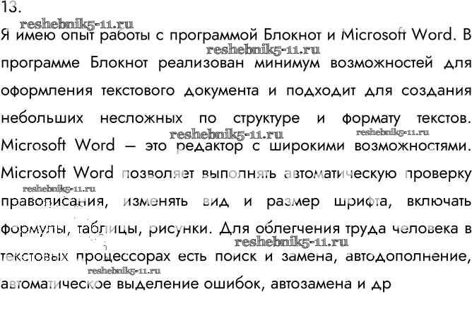 Готовая домашняя работа с ответами по Информатике за 7 класс Босова Учебник Бином 2015 ФГОС - §4.2. Создание текстовых документов на компьютере 13