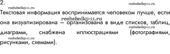 Готовая домашняя работа с ответами по Информатике за 7 класс Босова Учебник Бином 2015 ФГОС - §4.4. Визуализация информации в текстовых документах 2