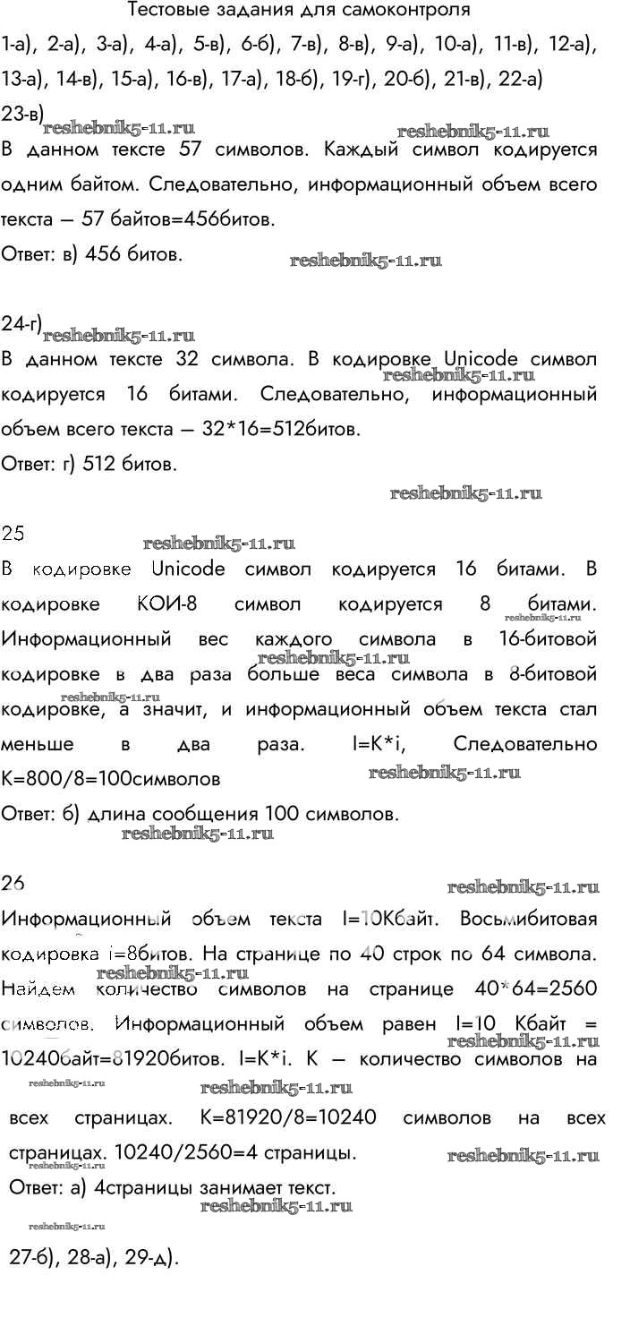 Готовая домашняя работа с ответами по Информатике за 7 класс Босова Учебник Бином 2015 ФГОС - Тестовые задания для самоконтроля 1-29