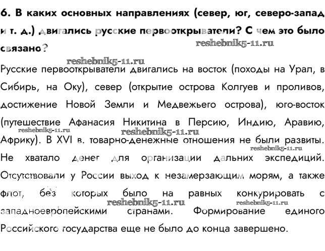 Готовая домашняя работа с ответами по Истории за 7 класс Арсентьев, Данилов, Курукин Учебник Часть 1, 2 Просвещение 2016 ФГОС - Вопросы и задания 6