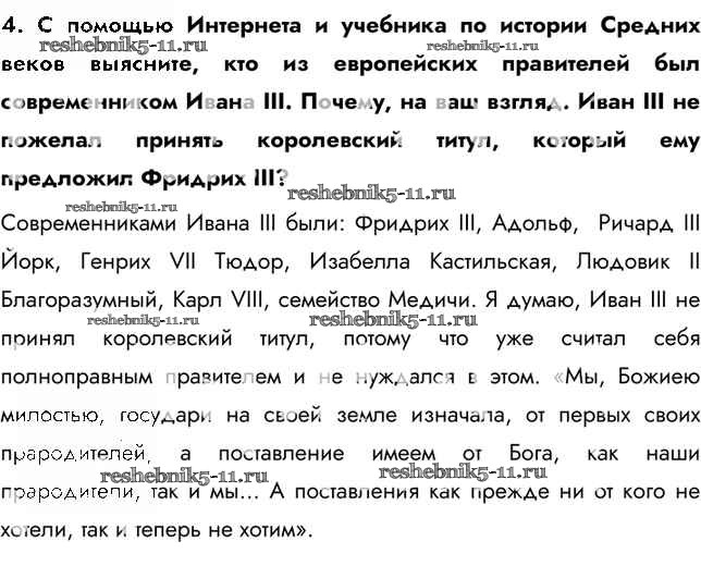 Готовая домашняя работа с ответами по Истории за 7 класс Арсентьев, Данилов, Курукин Учебник Часть 1, 2 Просвещение 2016 ФГОС - Думаем, сравниваем, размышляем 4