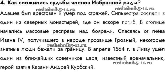 История за 7 класс Арсентьев Учебник Просвещение вопрос, задание 4