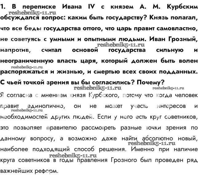 Готовая домашняя работа с ответами по Истории за 7 класс Арсентьев, Данилов, Курукин Учебник Часть 1, 2 Просвещение 2016 ФГОС - Думаем, сравниваем, размышляем 1